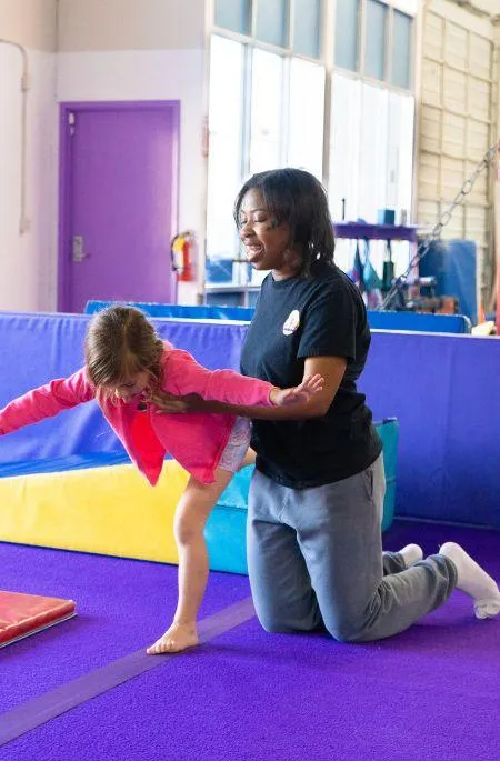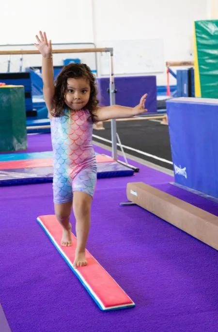 PK 3 Class (Ages 3+ and potty-trained): Builds independence with obstacle courses and basic gymnastics apparatus.
